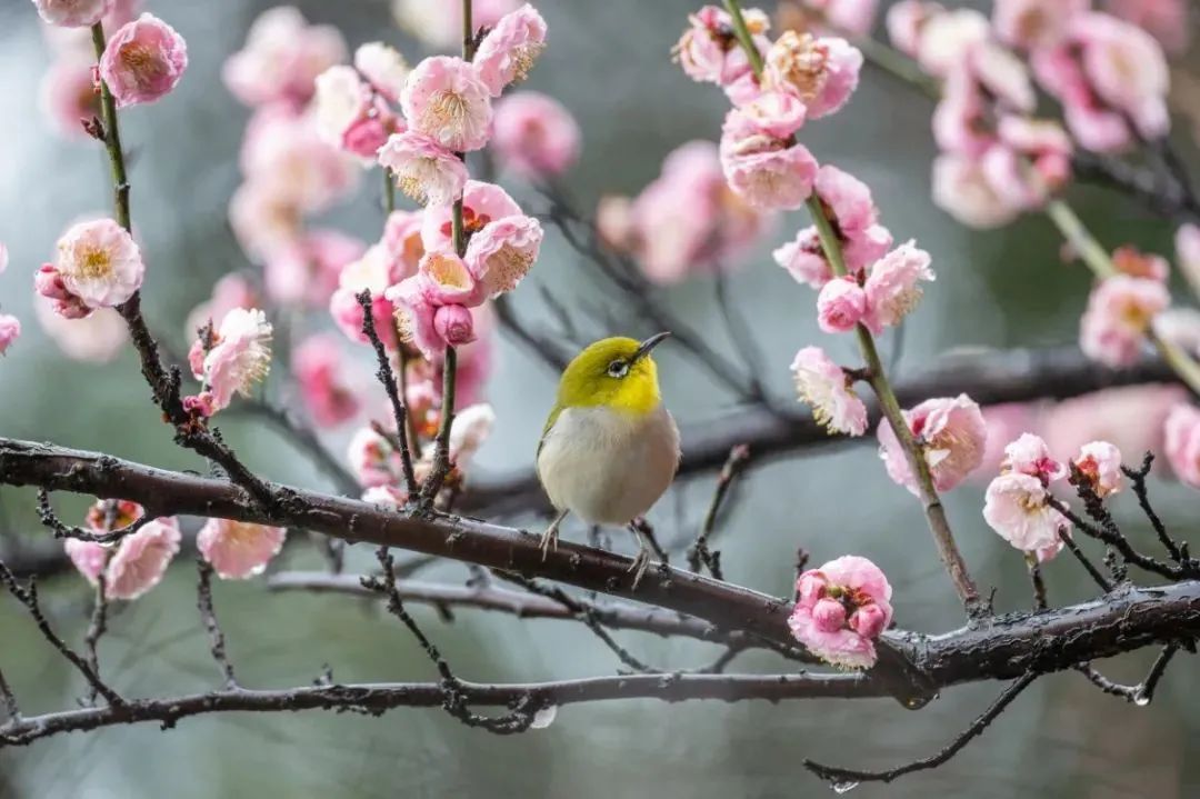雨后,彩园如同一幅山水画。蒙蒙细雨像是为园中梅蒙上了一层薄纱,有种雾里看花的朦胧感。